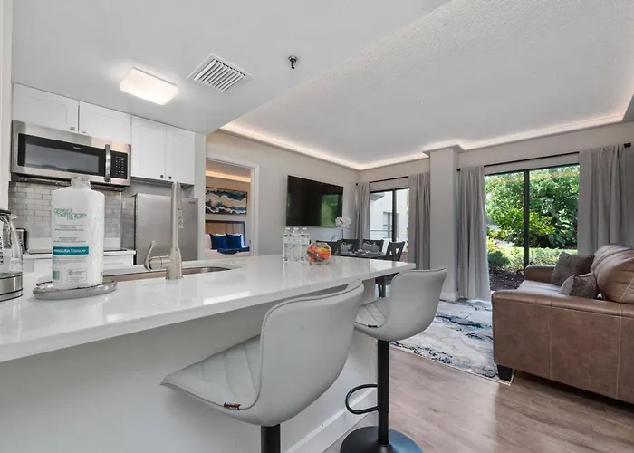 Para tu comodidad, el 2 Suites At The Enclave Near Universal dispone de una cocina bien equipada con un lavavajillas, cafetera/tetera y una nevera. El 2 Suites At The Enclave Near Universal está a 25 minutos en coche del aeropuerto Internacional de Orlando.